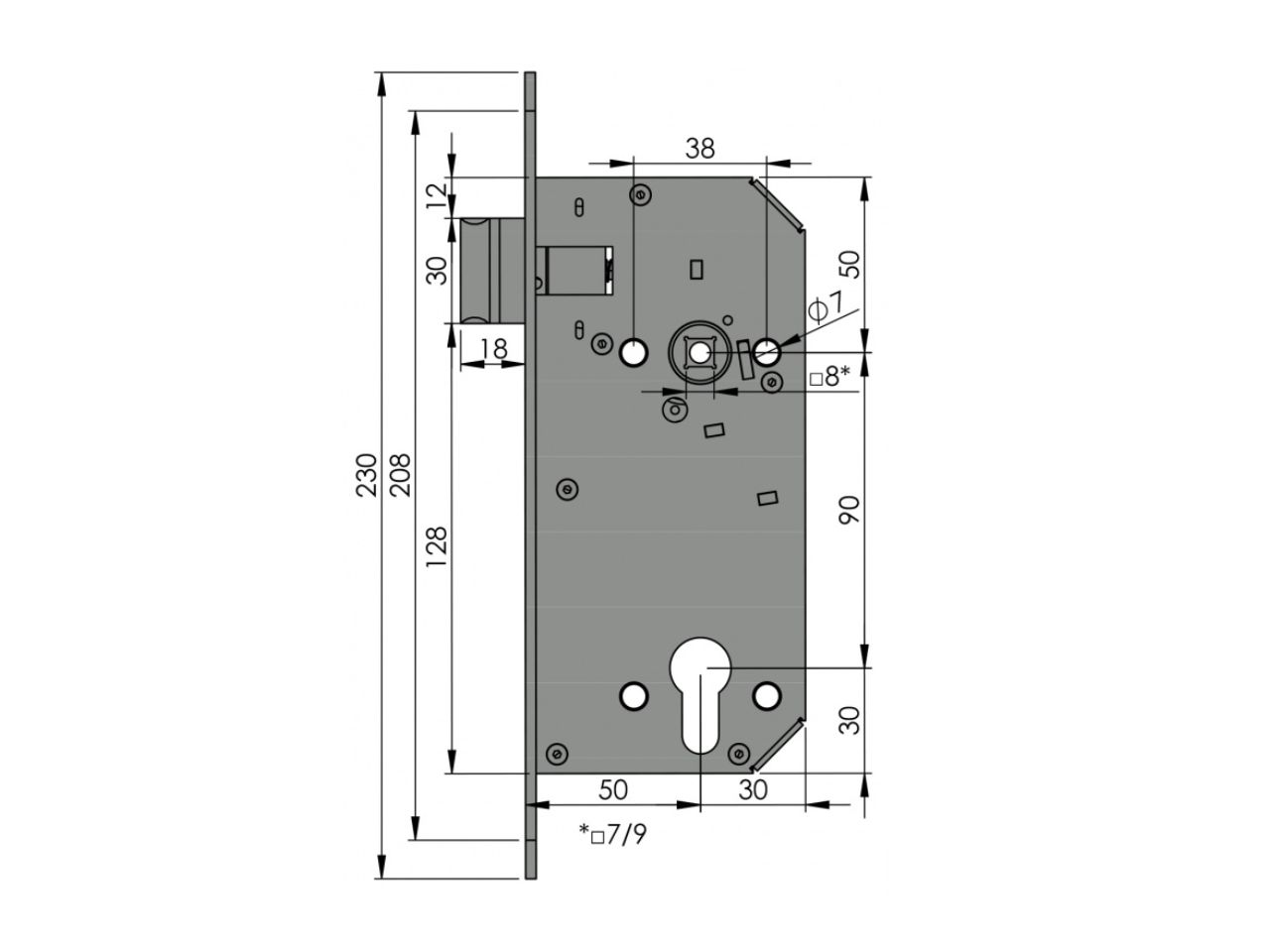 | Rozměry čela zámku | 230 x 22 x 3 mm, R11 |