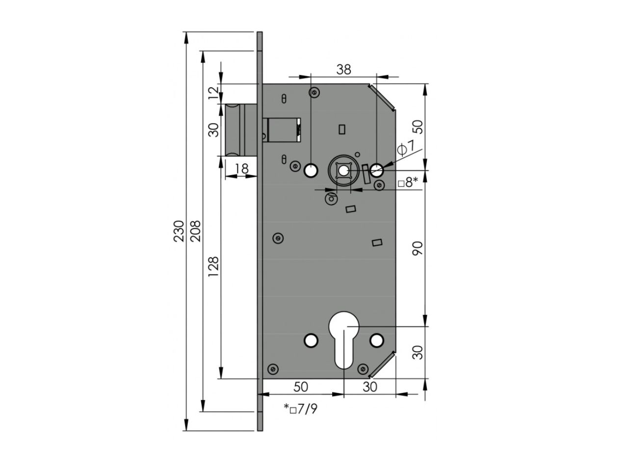 | Rozměry čela zámku | 230 x 22 x 3 mm |