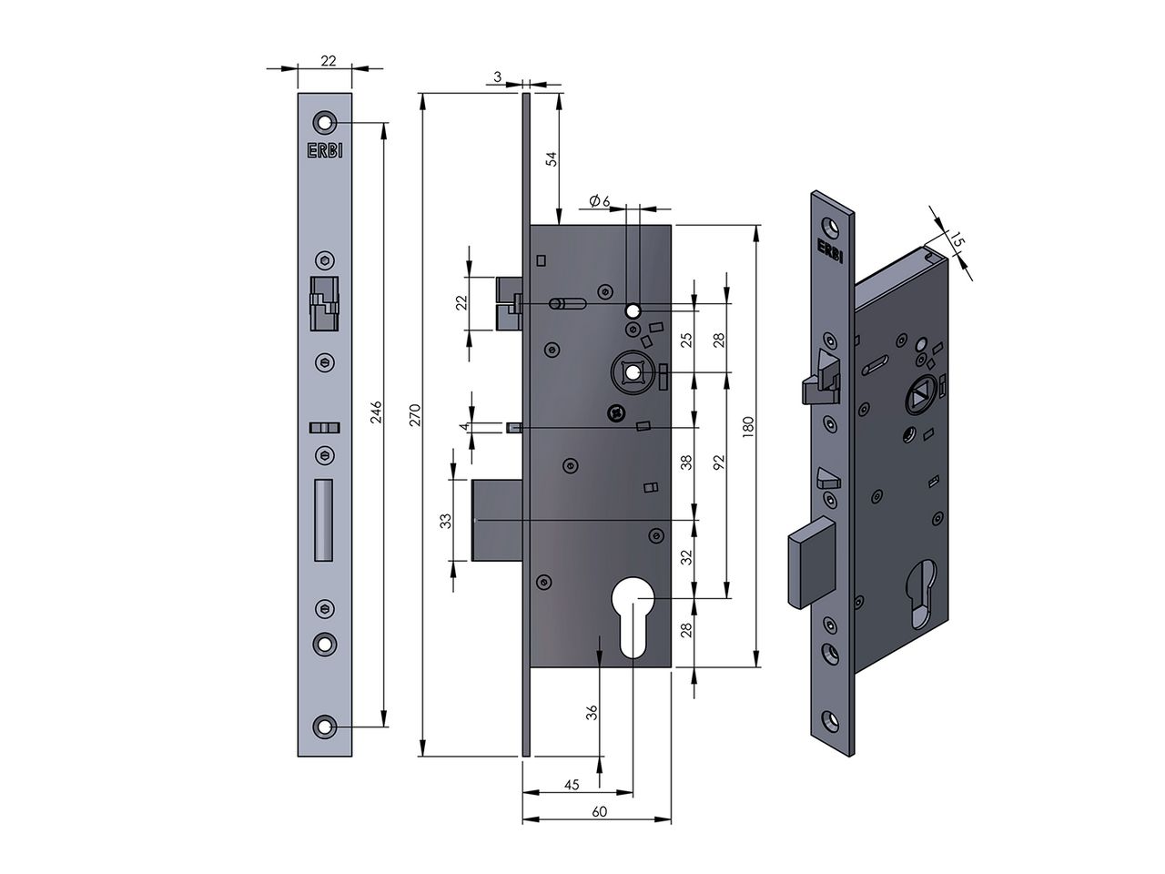 | Rozměry čela zámku | 270 x 22 x 3 mm |