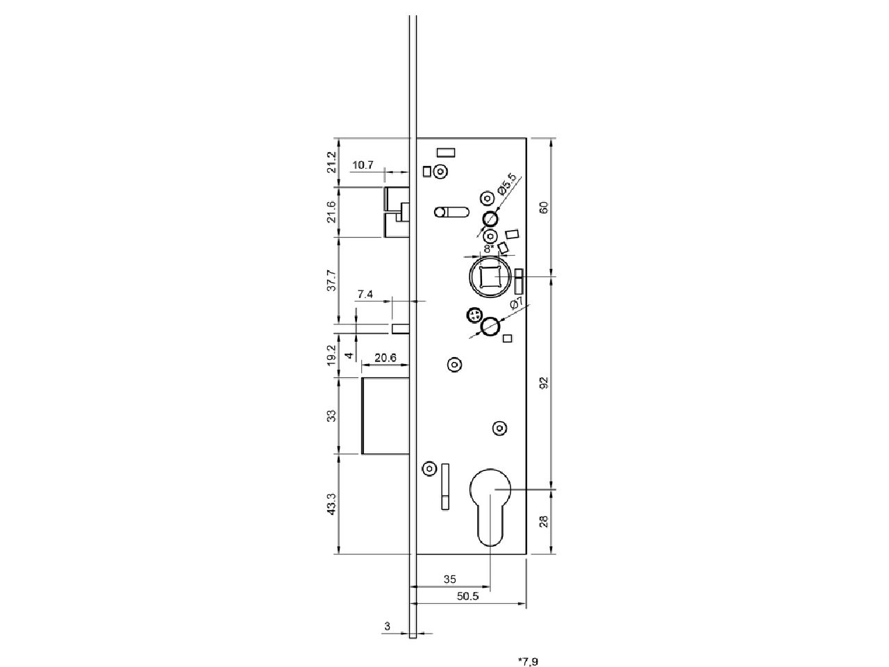 | Rozměry standardního čela zámku | 270 x 22 x 3 mm, nerez. Jiné varianty čel zámku zde |