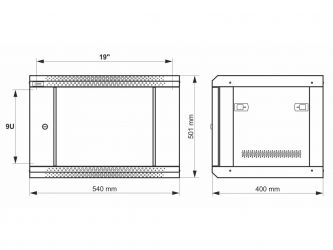 9U / 19" datový rozvaděč, nástěnný, plně sestavený, šedý, 540 x 400
