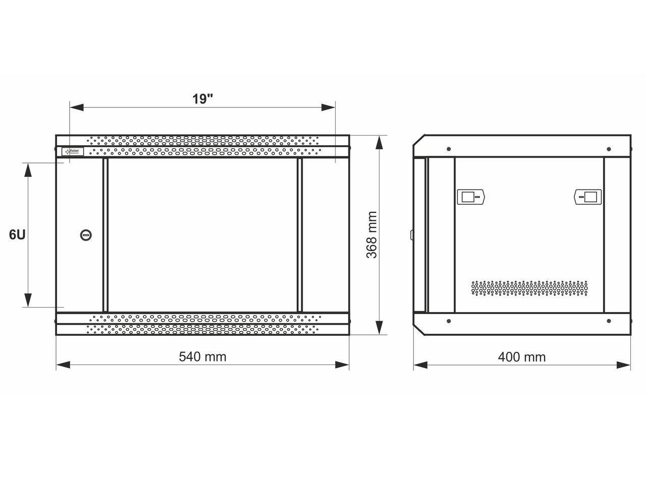 = KOD:110558 PKOD:25144 =6U / 19" datový rozvaděč, nástěnný, připravený k sestavení, šedý, 540 x 400