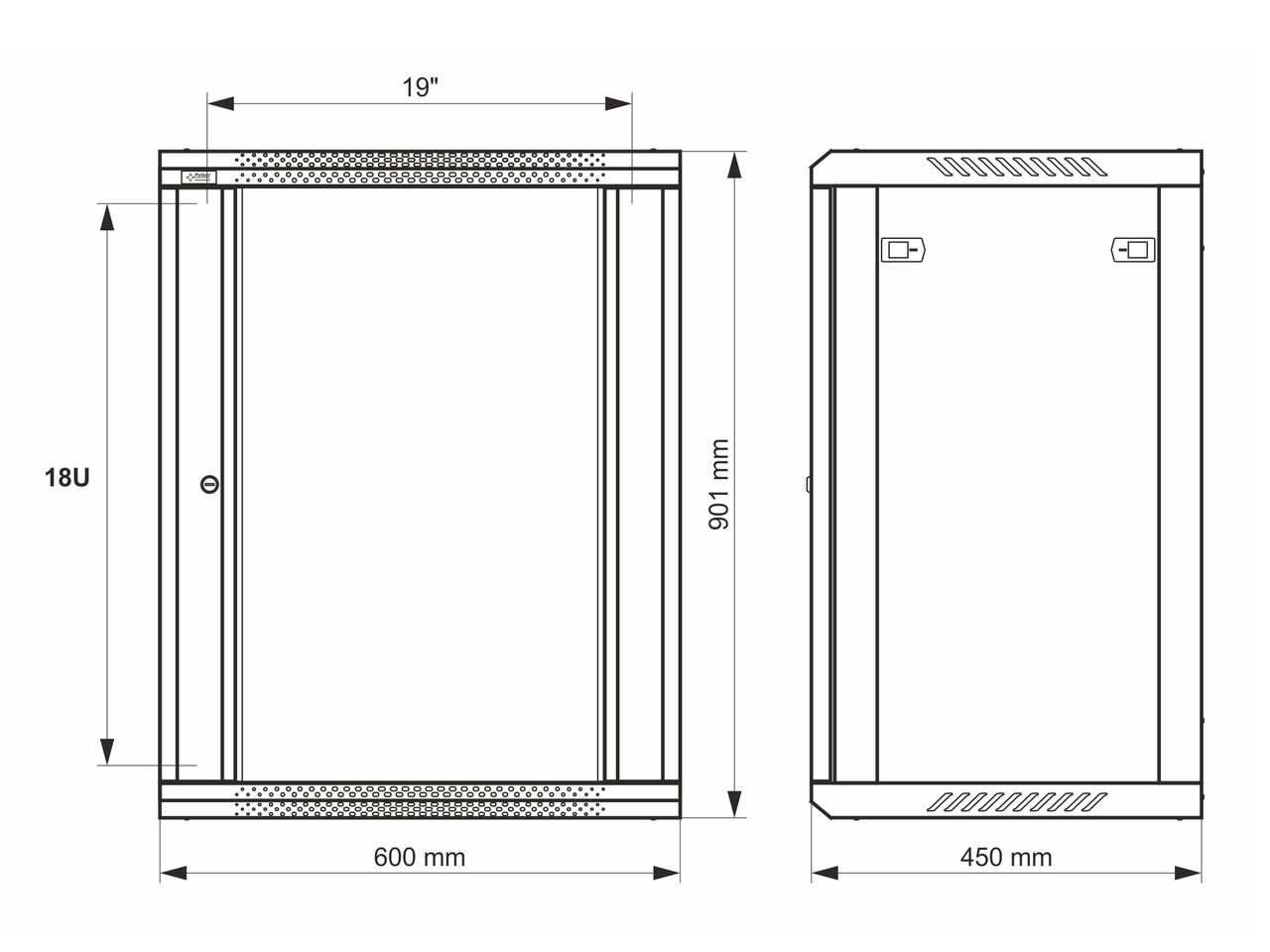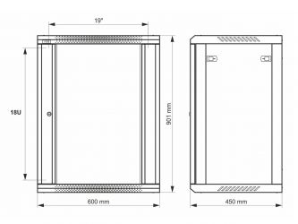 = KOD:110572 PKOD:25173 =18U / 19" datový rozvaděč, nástěnný, připravený k sestavení, šedý, 600 x 450