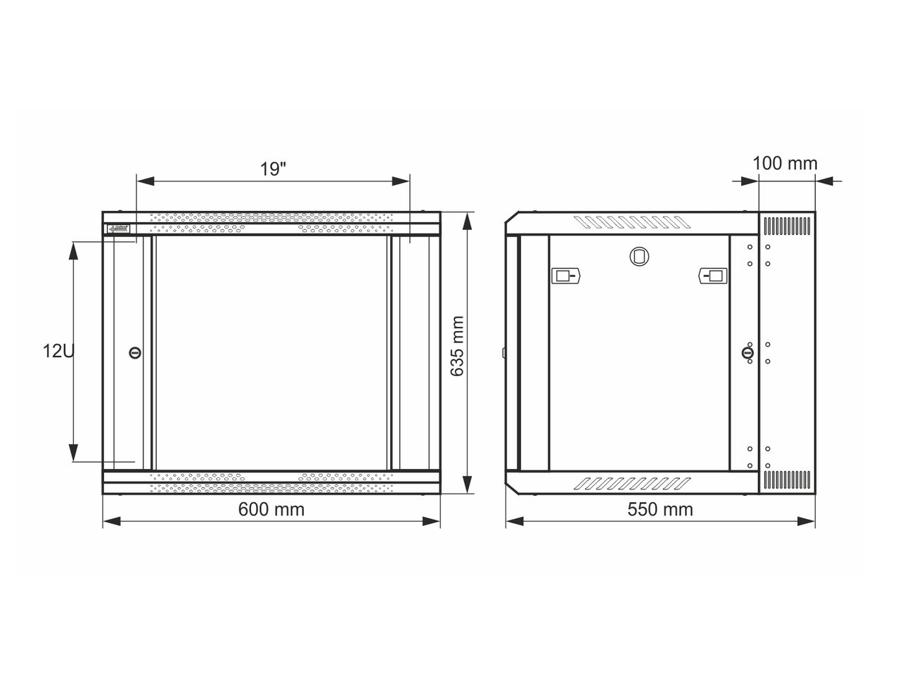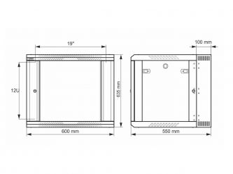 12U / 19" datový rozvaděč, nástěnný, dvoudílný, připravený k sestavení, šedý, 600 x 550