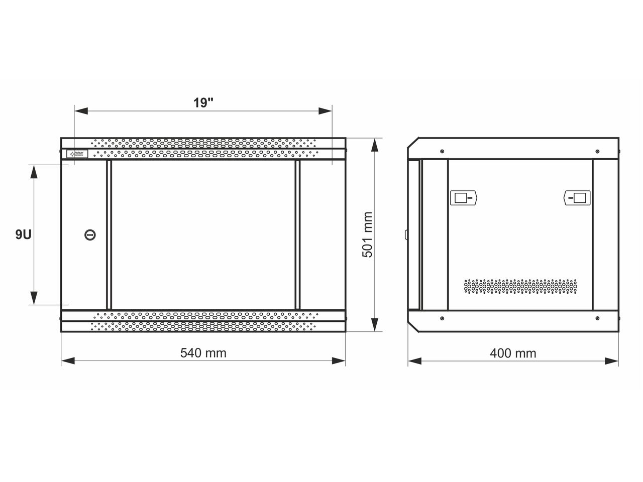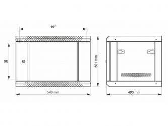 = KOD:110562 PKOD:25145 =9U / 19" datový rozvaděč, nástěnný, připravený k sestavení, šedý, 540 x 400