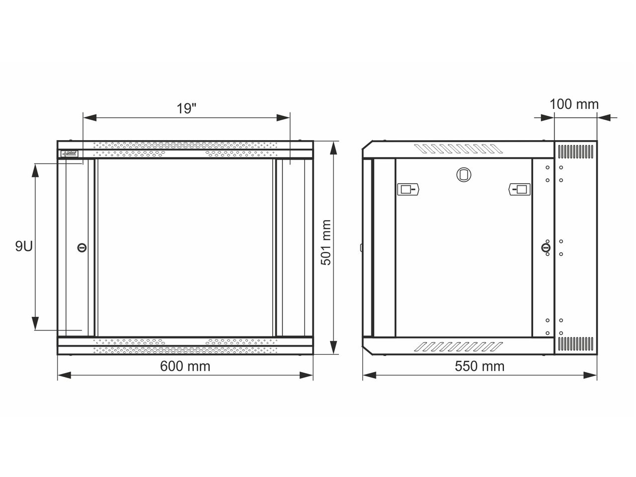 = KOD:110565 PKOD:25167 =9U / 19" datový rozvaděč, nástěnný, dvoudílný, připravený k sestavení, šedý, 600 x 550