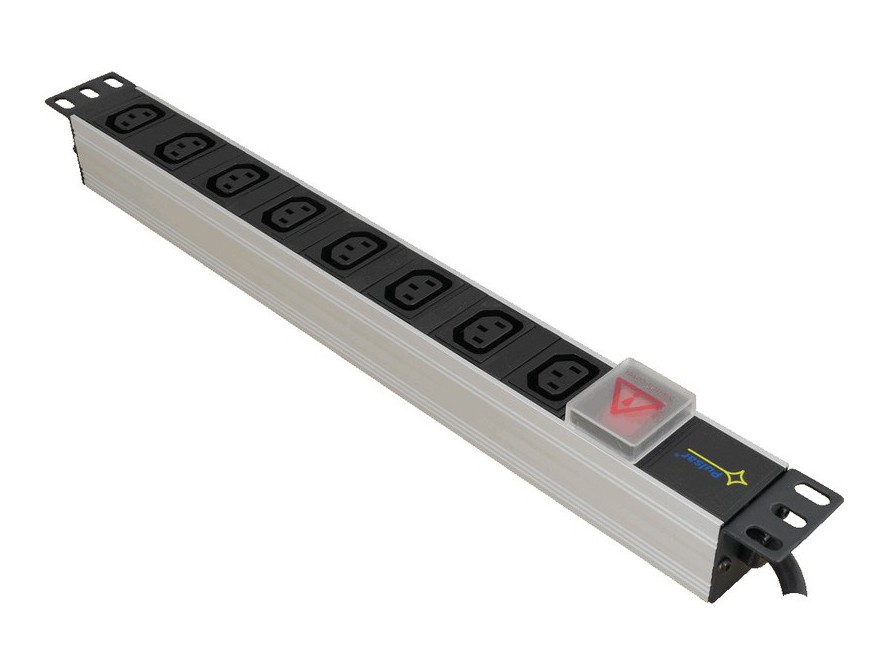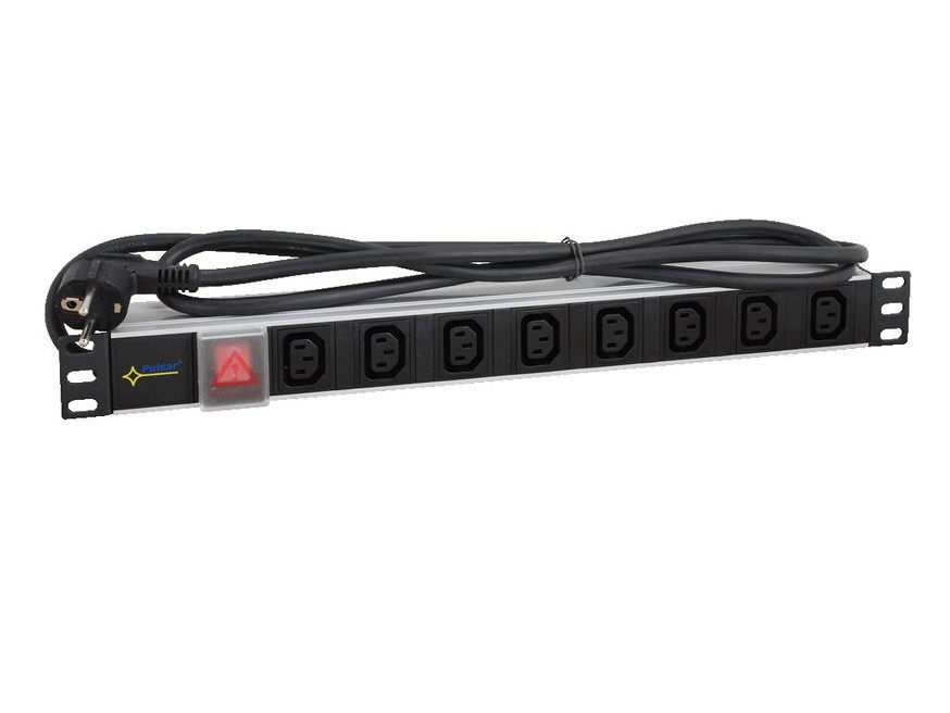 = KOD:110092 PKOD:20296 =Napájecí panel 230 VAC, 8 zásuvek typu C13, 1U, zástrčka E / F ("Unischuko")