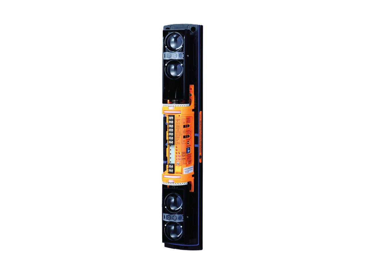 Synchronizovaná čtyř paprsková digitální infrazávora BEZ PŘEDNÍHO KRYTU, dosah 200m ve venkovním prostředí. 4 volitelné kanály. Možnost volby aktivního paprsku. Poplachový výstup NO/NC, DQ (detekce snížené viditelnosti) výstup NO/NC. Integrovaný optický hledáček a výrazné vnitřní zbarvení pro snazší zaměření. Krytí IP65 a integrovaný povětrnostní kryt. Možnost použití dvou jednotek nad sebou. Napájení: 10,5-30V / 17-24mA, rozměry: 448 x 79 x 96 mm, pracovní teploty: -35°C až + 60°C.
