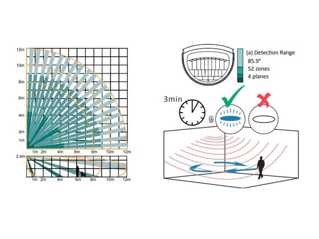 - Rozsah detekce: 12m (vějíř)