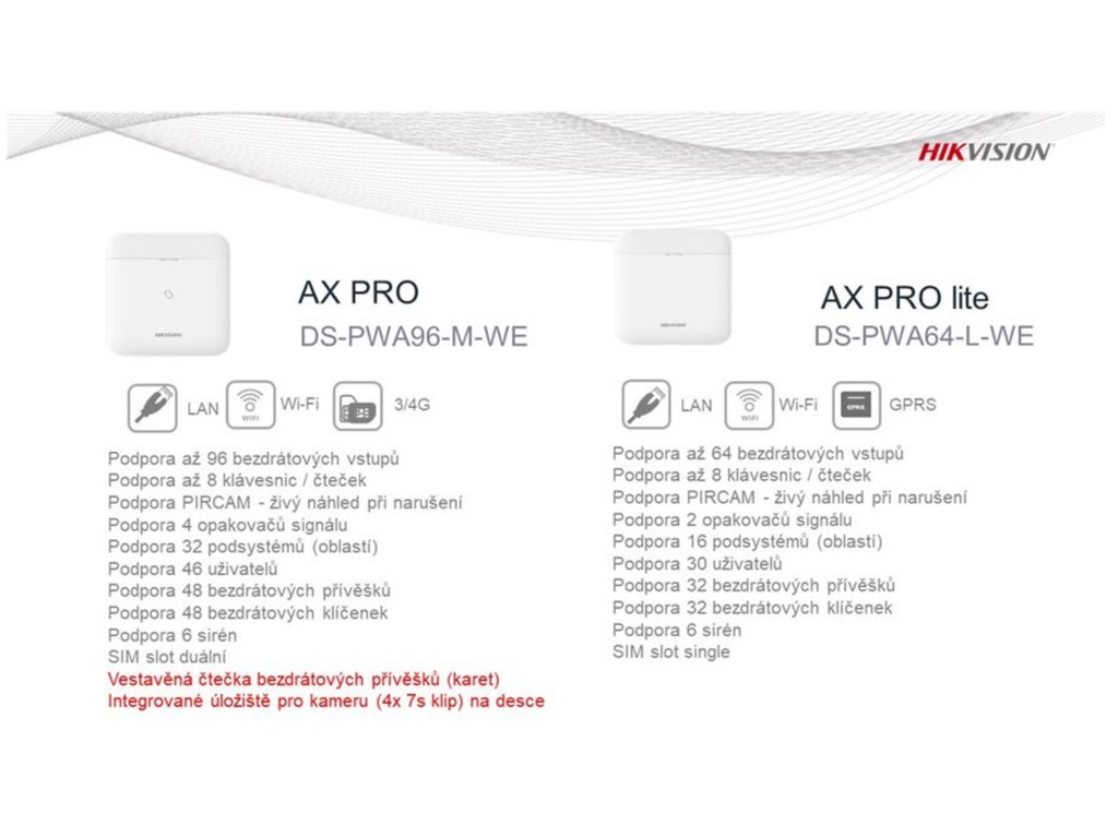 - Až 48 připojitelných bezdrátových klíčenek, 4 opakovače, 6 sirény, 8 čteček a klávesnic