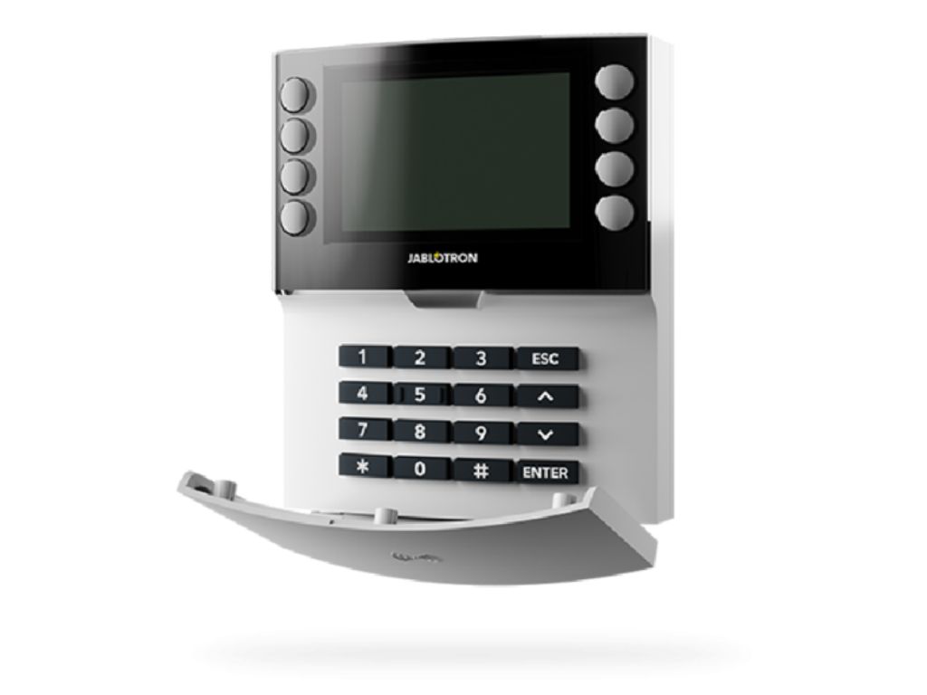 Klávesnice je komponentem systému JABLOTRON sloužící k ovládání a signalizaci aktuálního stavu systému. Je vybavena čtyřmi segmenty. Jejich popisy se zobrazují na LCD displeji. Výrobek je určen pro montáž proškoleným technikem s platným certifikátem Jablotronu. Tento výrobek je kompatibilní s ústřednami JA-102K, JA-103K a JA-107K.
