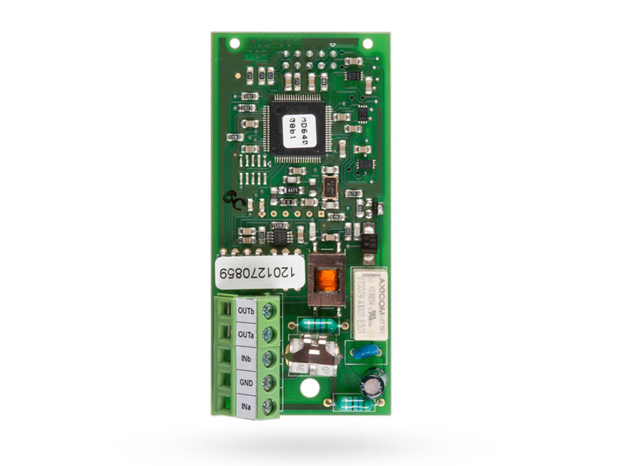 Ústředna s tímto modulem předává poplachové hlasové zprávy, komunikuje s pultem centrální ochrany a umožňuje vzdálený přístup. Komunikátor pracuje pouze s tónovou volbou. Je vybavený základní přepěťovou ochranou.