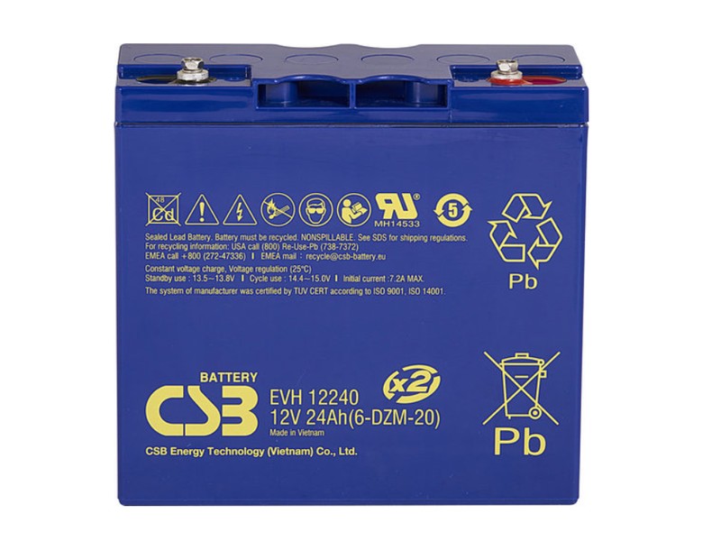 = KOD:109245 PKOD:20653 =12V, 24Ah záložní, bezúdržbový, VRLA, uzavřený, akumulátor od CSB Battery. Technologie AGM. Určený pro cyklický provoz.