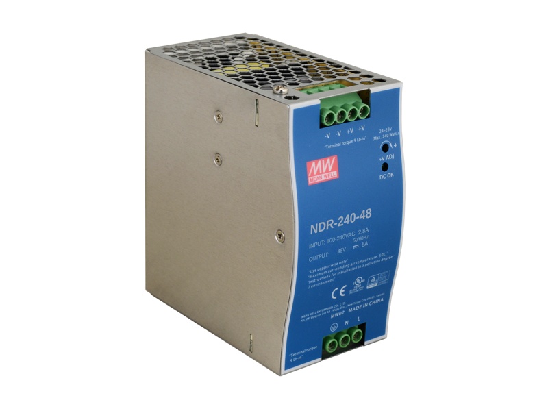 = KOD:315954 PKOD:26747 KODVYROBCE:303703681 =Průmyslový spínaný zdroj 48 až 55VDC - 240W, účinnost 90%, provozní teplota -20°C až +70°C, rozměry 125 x 114 x 63mm, instalace na DIN lištu, ochrana proti zkratu/přetížení/přepětí/přehřátí